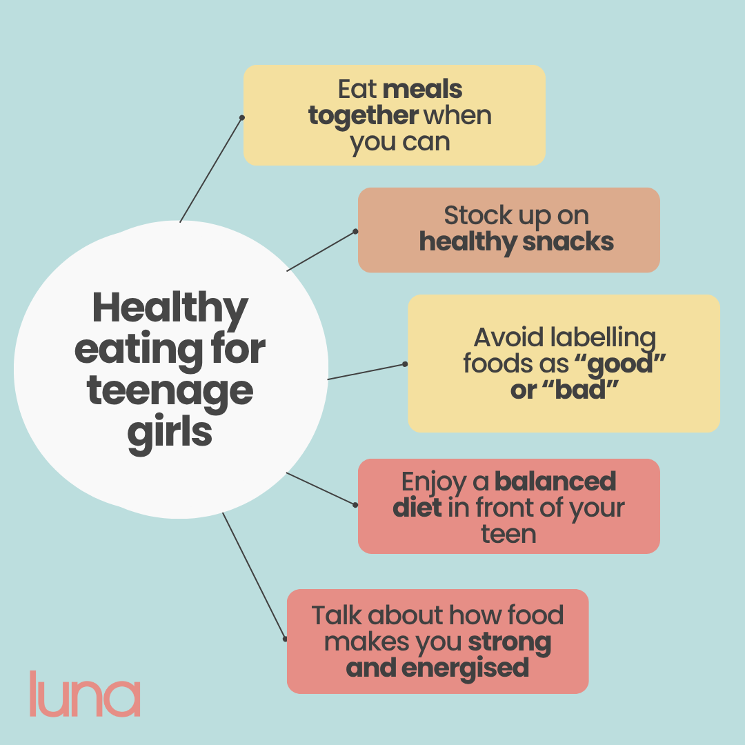 - Building a relaxed, healthy relationship with food now sets your teen up for lifelong wellbeing, and if you need support with this, luna has lots of positive content about healthy eating that's reviewed by medical experts and put forward in a way that's always mindful of how vulnerable these discussions can be with young people