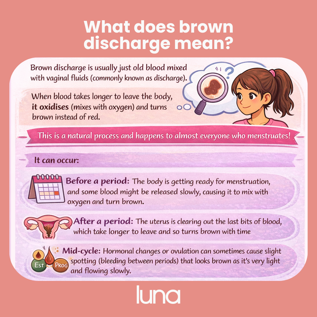 So here’s a simple breakdown of what brown discharge means, when it’s expected, and when it might be worth paying closer attention.