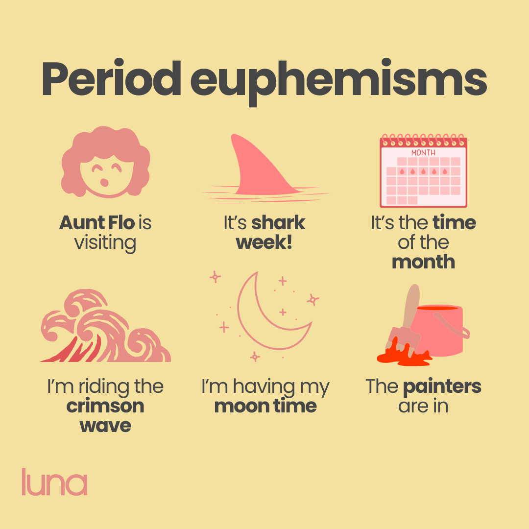 - Teens use loooads of different euphemisms for periods when they ask us anonymous questions in the luna app, like "Shark Week" or "The Curse" – often as a way to make the topic less awkward