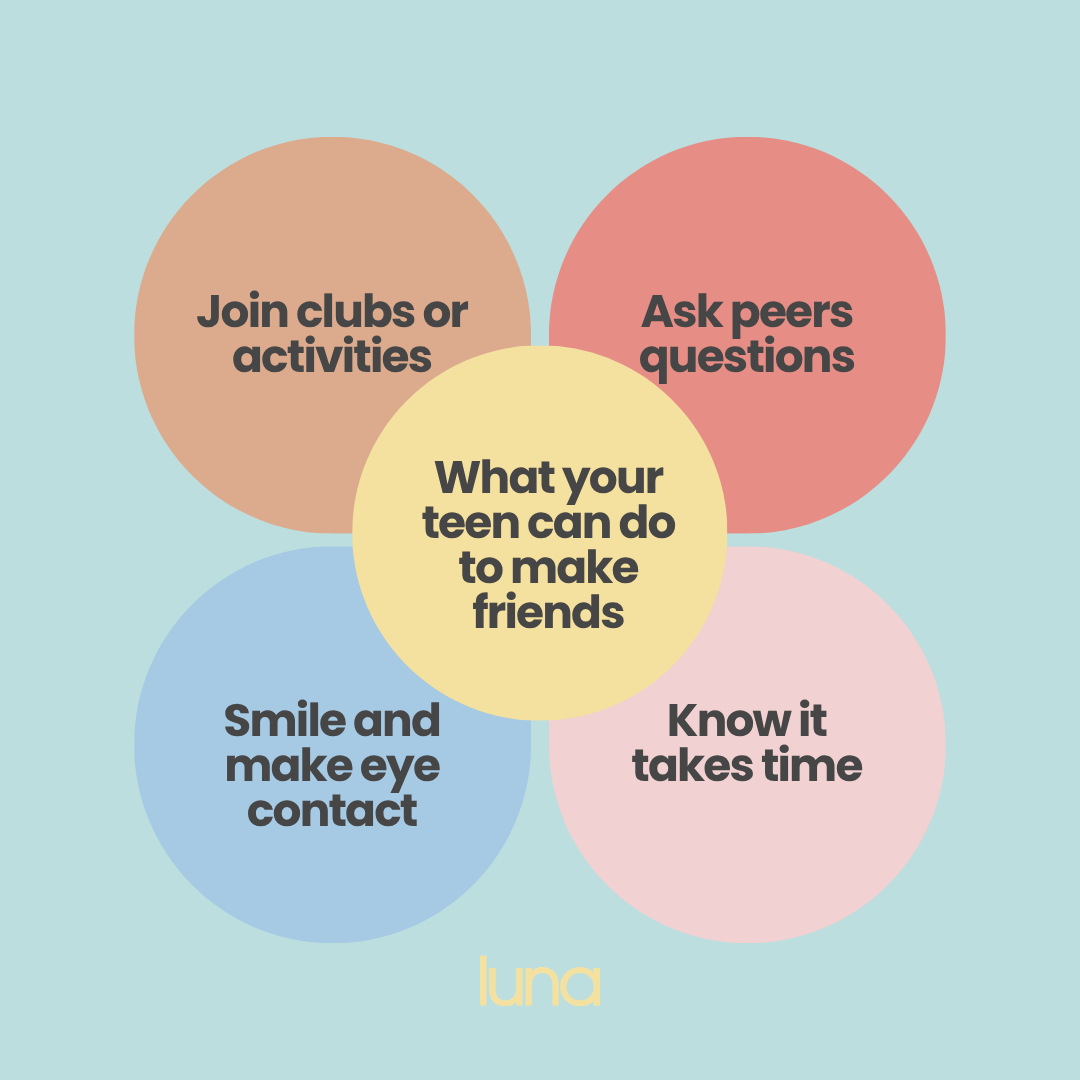 - Join clubs or activities: encourage your teen to try clubs, sports, or hobbies they enjoy - it’s one of the easiest ways to meet people with shared interests
