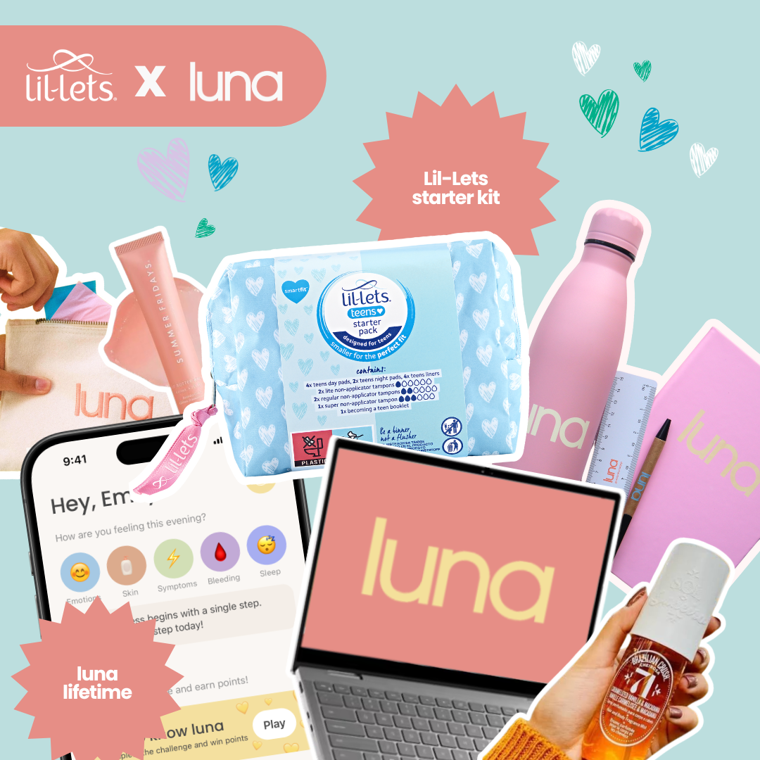 If you’re a teen, download the luna app today and take part in the Lil-Lets x luna challenge to earn rewards, learn something new each week and enter to win prizes.